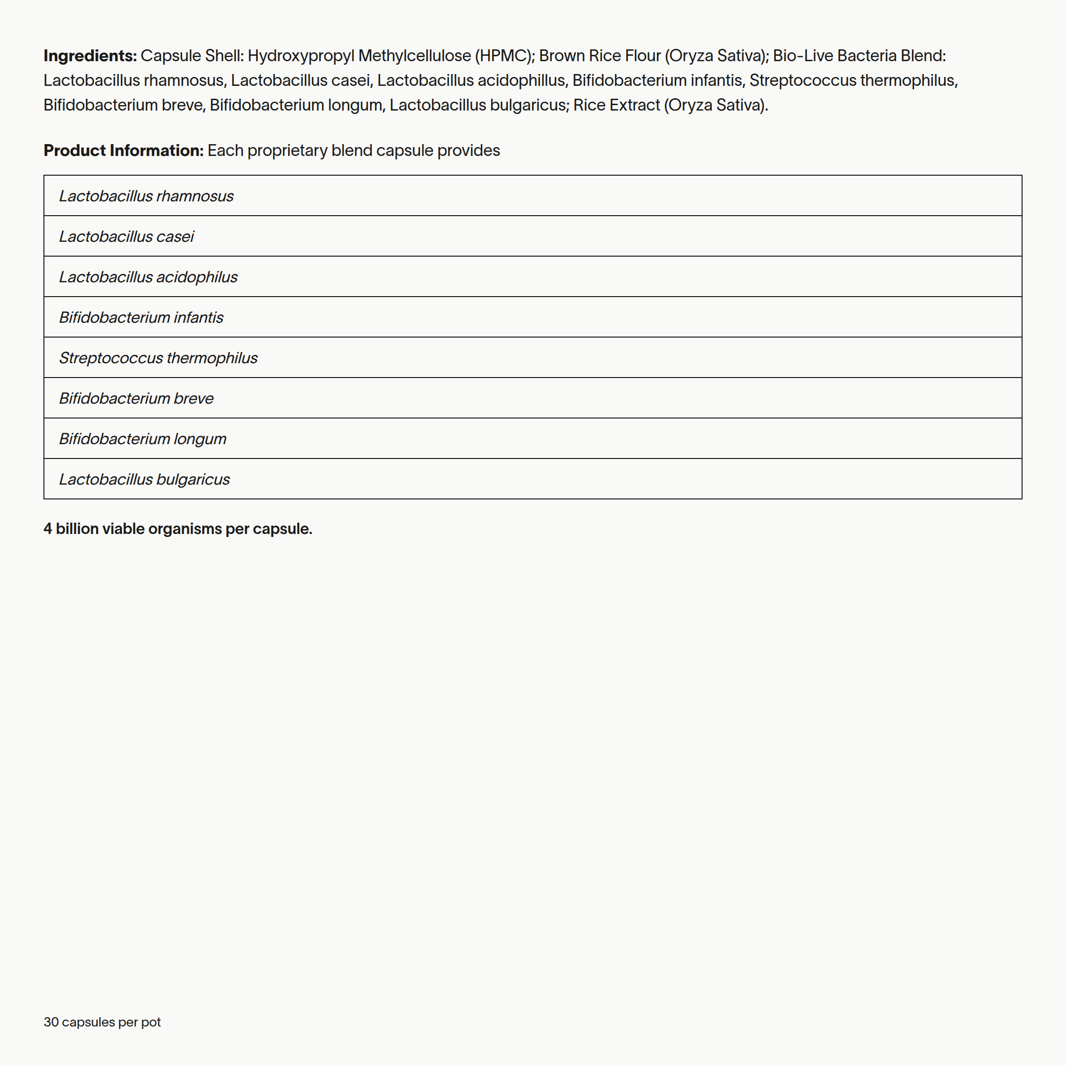 Take 1 capsule, once-daily. All strains along with the other ingredients are in every capsule.