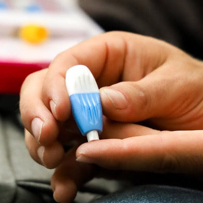 puncture the fingertip. - One or two microcontainers, depending on the tests you have purchased, in which your blood sample will be collected.